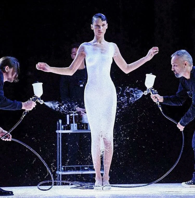 The DNA of this brand has always been about the marriage of science and craft. The founders continue to innovate season after season and use new materials to push the envelope of fashion. The live spray of Hadid was a clever, physical personification of what the brand stands for.